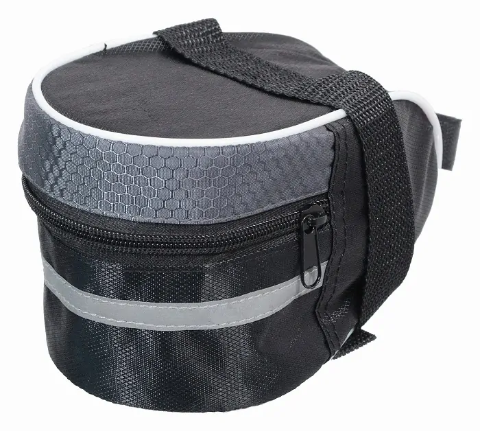 Na zip uzavíratelná brašna pro upevnění pod sedlo jízdního kola. Je vyrobena z vodoodpudivého materiálu a po obvodu opatřena reflexním páskem.