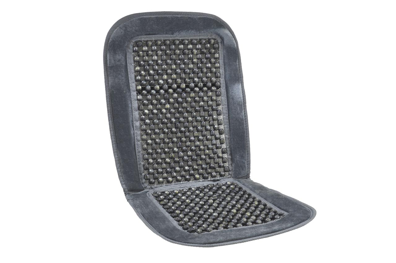 Sedací podložka z dřevěných korálků, zvyšuje komfort cestování. Podporuje oběhový systém, a tím snižuje pocit únavy. Struktura korálků zajišťuje mikroventilaci a přináší úlevu zádům. Okraje jsou vyrobeny z měkkého veluru (plyše). Lze použít ve vozidlech vybavených bočními airbagy. Upevnění podložky pomocí gumičky. Velikost: celková délka 90cm, šířka sedáku a opěráku 44cm.