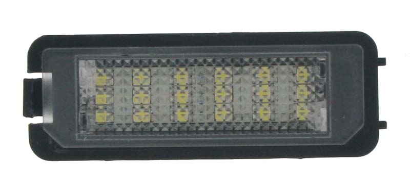 Náhrada originálních světel pro osvětlení SPZ ve vozech VW. Jedná se o přímou náhradu, což zajišťuje jednoduchou montáž. Tyto LED světla dají vašemu vozu originální vzhled tím, že změní nažloutlé světlo klasické žárovky na velmi jasné bílé světlo vysoké intenzity podobné světlu z xenonů. V každém světle je 18 vysoce svítivých SMD LED diod.