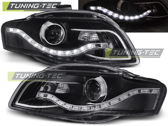 Přední světla Audi A4 B7, 2004-2008, LED Daylight, černé black LPAU52