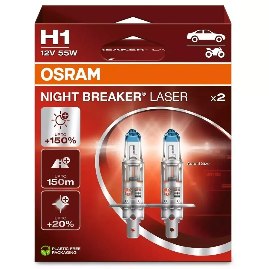Nová generace Night Breaker Laser NEXT GENERATION se vyznačuje především až o 150% vyšší svítivostí oproti klasickým žárovkám, navíc tyto žárovky nabídnou až 150 metrů světelný kužel a 20% jasnější světlo - vše pro pohodlnou a bezpečnou jízdu. OSRAM představil nejjasnější halogenové žárovky a xenonové výbojky pro automobily. Halogenová varianta žárovek Night Breaker Laser NEXT GENERATION se dočkala dalšího zlepšení a dnes vyzařuje na silnice až o 150 % více světla než standardní halogenové žárovky. Kromě výraznějšího osvětlení silnice přinášejí nové žárovky i další vynikající parametry. Halogenová žárovka Night Breaker Laser dosahuje až o 40 metrů delšího světelného kužele a se světlem o 20 % bělejším oproti standardním žárovkám. Vysoce výkonné žárovky, jaké řada Night Breaker nabízí, zajišťují bezpečnou cestu bez únavy a umožňují rychleji a snáze identifikovat překážky a nebezpečná místa na silnici. S bělejším světlem se předměty jeví přirozeněji, ve věrohodnějších barvách, což je významné například u výstražných a informačních dopravních značek.