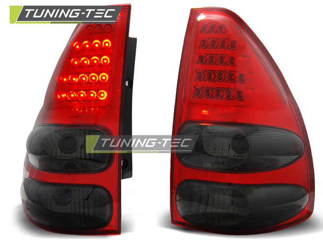 Zadní čirá světla Toyota Land Cruiser 120 03-09 - kouřové/červené LED, bez homologace, snadná montáž výměnným způsobem, super cena, vysoce sportovní vzhled, cena za pár.