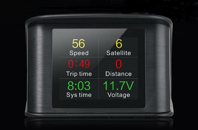 • displej zobrazuje: rychlost, hodiny, počet satelitů, směr jízdy, napětí baterie, nadmořskou výšku, ujetou vzdálenost, doba jízdy