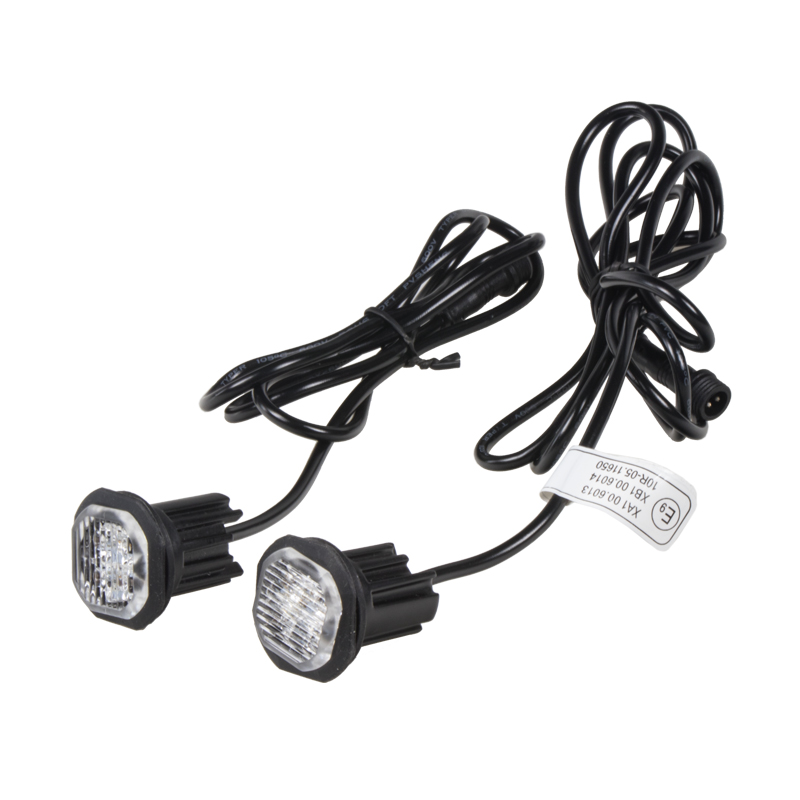 2x přídavné modré výstražné LED světlo pro zápustnou montáž nebo montáž na povrch (držák v balení).