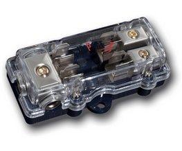 IMPACT gold/silver pojistkový distribuční blok pro 2 AGU pojistky IN 3x25 mm2 / OUT 2x10 mm2.