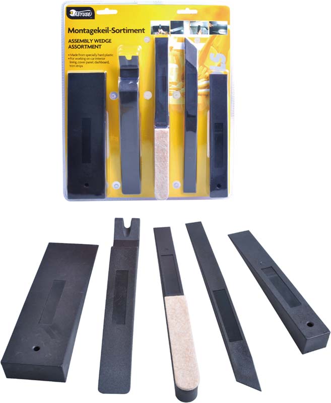 Profesionální sada nástrojů pro šetrné rozebírání palubních desek, čalounění a jiných dílů vozidel. Sada obsahuje 5 kusů robustních plastových nástrojů různých tvarů s různým zakončením.