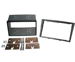 Plastový adaptér ve stříbrné barvě + kovový rámeček slouží pro montáž neoriginálního 2DIN autorádia do vozu